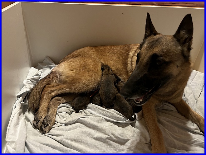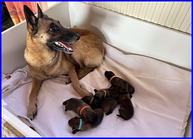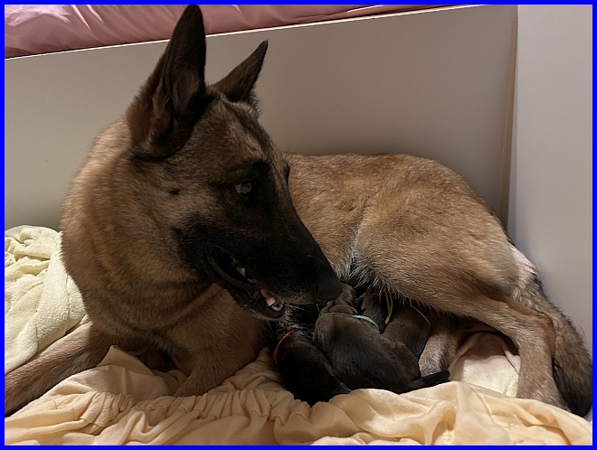Am 21.08.2024 setzten die Wehen ein und die Geburt meines U-Wurfes begann. Am 22.08.2024 um genau 0:02 Uhr kam der erste Welpe zur Welt. In genau zwei Stunden und 40 Minuten brachte Quintana sechs Welpen zur Welt. Es sind ALLES Rüden, kein einziges Mädchen ist dabei, unglaublich!!! Und darum ist das der U-unglaubliche Wurf :-)