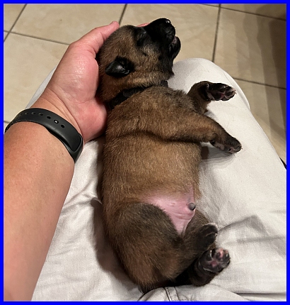 Am 29.08.2024 waren meine kleinen U-nglaublichen schon eine Woche auf der Welt, hatten 1. Woche Geburtstag. Klar mussten da Fotos gemacht werden! Es war zwar einen Tag später, alle Aufnahmen sind vom 30.08.2024, aber das ist schon noch ok ;-) Quintana ihre Babys entwickeln sich prächtig. Natürlich verbringen sie die meiste Zeit mit schlafen und trinken, es passiert noch nicht viel in der Wurfkiste. ALLE Welpen hatten pünktlich zum 1. Woche Geburtstag ihre Geburtsgewichte verdoppelt!!! Quintana ist eine richtige Milchkuh :-) aber es ist auch schon eine verfressene Bande, unsere Boygroup! Es ist Quintana ihr erster Wurf, alles ist aufregend und neu für sie. Die ganze erste Woche wollte sie auf keinen Fall außerhalb der Wurfkiste fressen oder trinken, alles musste ich ihr reinstellen und warten bis sie fertig ist. Heute sind die Welpen schon drei Wochen alt, ich bin bisschen spät mit meinem Artikel, aber die Zeit mit Quintana und den Welpen zu verbringen, ist mir wichtiger. Inzwischen hat sich Quintana entspannt und frisst endlich auch außerhalb der Wurfkiste. Sie ist eine sehr liebevolle Mutter, versorgt die Babys sehr gut, aber sie gönnt sich jetzt auch schon Auszeiten, indem sie gerne mit in den Garten geht und auch eine Runde Ball mit mir spielt. Sie ist erstaunlicherweise sehr tolerant, meine anderen Hunde dürfen relativ nah zu den Welpen, dürfen schon in die Wurfkiste sehen. Anschnüffeln ist seit der zweiten Lebenswoche auch erlaubt. Aus unserer "Menschenfamilie" darf jeder zu den Babys, selbst meine kleinen Enkelkinder, das freut mich besonders sehr. Die Welpen erleben von Anfang an Kinder, so wie Kinder nun mal sind - manchmal laut und auch leise, schnell und wieder langsam in ihren Bewegungen... eben Kinder! In meinem nächsten Beitrag werde ich einige Fotos mit meinen Enkelchen zeigen, es ist einfach nur wunderschön zu sehen, wie lieb Henry und Hannah mit den Babys sind und wie sehr uns Quintana vertraut.