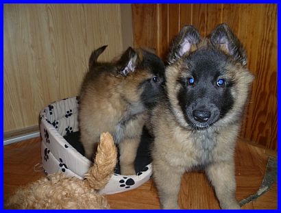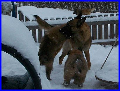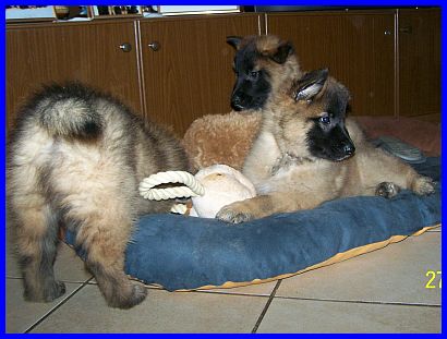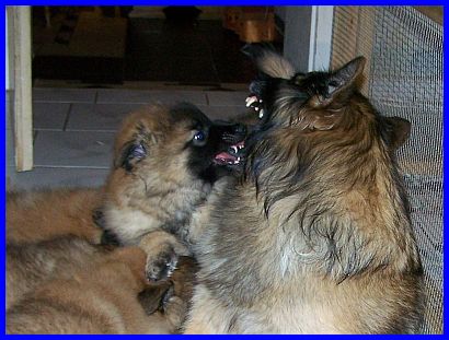 Domino spielt mit seiner Mama Abigail. Beide zeigen das typische Belgiergesicht, wir sind ja sooooooooooo gefährlich;-) |