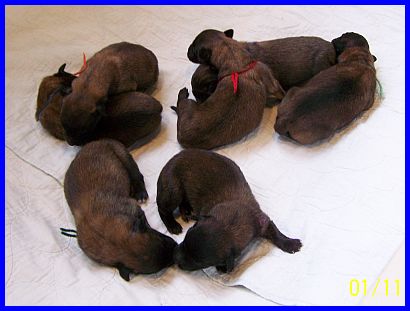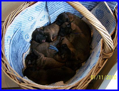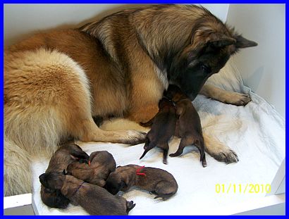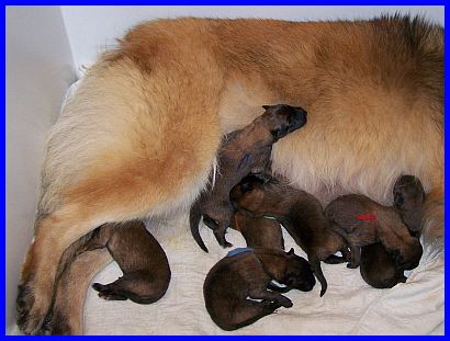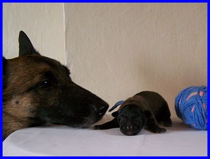 Abigail paßt gut auf ihre Babys auf, niemand kommt unbemerkt in die Nähe der Wurfkiste. |