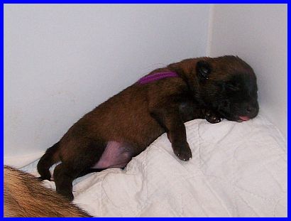 Die kleine Hündin mit dem lila Band schläft am liebsten auf dem Rücken, genau wie ihre Mutter Avanti!