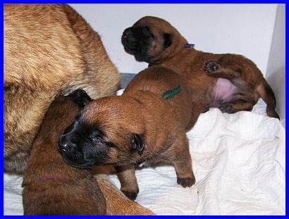Hier sind die Babys 12 Tage alt, da bleibt Avanti auch schon mal sitzen beim Säugen. |