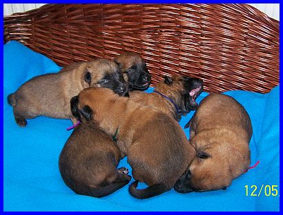 Das sind die vier Rüden, genau 14 Tage alt. Sie haben alle ihr Gewicht mehr als verdreifacht, und sind sehr mobil. |