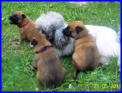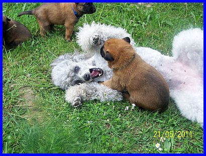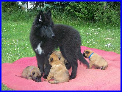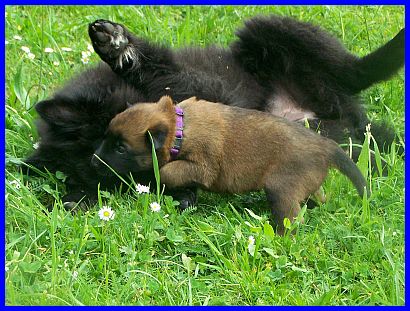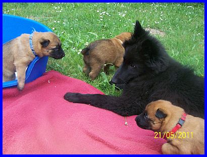 Hurra, wir können aus der Kiste raus und haben eine richtig große Spielwiese. Mama paßt natürlich noch auf uns auf, aber wir haben auch schon Besuch bekommen. Vanessa war da und hat mit uns gespielt und gekuschelt! Yoopee, unsere große Groenendaelschwester;-), Yoopee ist erst 14 Wochen alt, darf jetzt auch zu uns kommen, das macht richtig viel Spaß!!! |