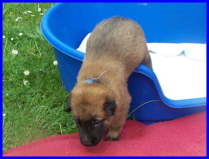 Nun sind die Kleinen schon drei Wochen alt, da ist die Wurfkiste nur noch wie ein kleines Gefängnis! Sie wollen raus, ihre Welt erobern! Also war Umzug angesagt, der Auslauf mußte her. Im Alter von 17 Tagen gab es schon mal eine kleine Freigang-Kostprobe, die die Zwerge perfekt gemeistert haben. Sie waren von der neu gewonnenen Freiheit total begeistert, sind die ersten richtigen Schritte