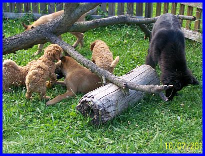 Auf den nächsten Fotos können Sie die Entwicklung der Beiden in den letzten vier Wochen verfolgen. Besonders schön zu sehen, wie sanft die "Riesen" mit den Pudelbabys spielen. Mittlerweile sind sie 10 Wochen alt und warten sehnsüchtig auf "Ihre" Familie. |