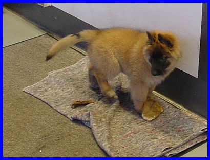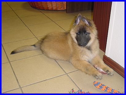 Hallo Mama und alle anderen, die zu Hause an mich denken. Ich bin´s, euer Damon! Mir geht es prima! Ich habe ein ganz tolles Zuhause bekommen, und natürlich schicke ich Euch gleich mal ein paar Fotos. Ich habe auch einen neuen Namen bekommen, ich heiße jetzt "Hasso", so wie mein Vorgänger! Das war ein richtiger Deutscher Schäferhund, bestimmt werde ich auch mal so groß wie mein Namensvetter! Wie ihr seht, auch ich habe zuerst mein ganzes Spielzeug ausgepackt und ordentlich weggeräumt. Am liebsten liege ich bei meinem neuen Herrchen unter dem Schreibtisch, da kann ich alles prima beobachten.