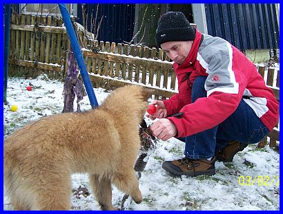 Hallo Mama und alle anderen, ich bin zwar noch nicht so lange fort wie meine Geschwister, aber ich schicke auch schon mal ein paar Grüße und Fotos aus meinem neuen Zuhause. Ach ja, ich bin´s, euer Don Vito! Mir geht es prima! Ich habe auch ein ganz tolles Zuhause bekommen, Die ersten Fotos zeigen, wie ich meine neue Familie bei uns zu Hause kennen gelernt habe, ich hatte Glück, war ja der letzte Bub! Wir habe richtig toll miteinander gespielt, und ich habe mich von meiner besten Seite gezeigt.