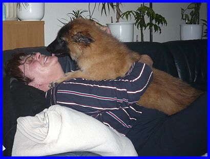 Mit meinem neuen Frauchen kann ich super gut kuscheln, ich wasche mir sogar vorher meine Pfoten in dem kleinen Bächlein neben dem Zaun ;-) Na gut, das findet sie dann doch nicht so toll, aber richtig böse kann sie mir dennoch nicht sein, ich bin nun mal ein kleiner Charmbolzen, mir kann keiner wiederstehen. |