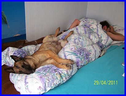 Sieben Stunden vor der Geburt, Avanti kuschelt mit Thomas. |