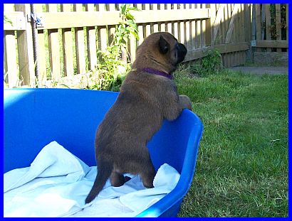 Nun war es endlich soweit, die Bande durfte den Welpenkindergarten erobern. Mittlerweile sind aus den Babys richtige kleine Hunde geworden die voller Neugierde und Tatendrang in ihre Welt hinaus marschieren. Es gibt ja so viel zu entdecken, zu erschnüffeln, unheimliche Geräusche (Rasenmähermonster!), schöne Geräusche