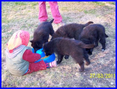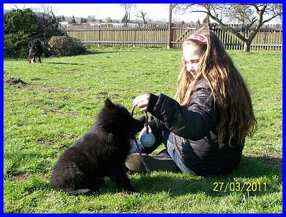 Der Abschied von einem Welpen fällt keinem Züchter leicht, aber Yoopee hat es sehr gut bei uns, wir lieben sie alle schon sehr! Sie ist eine bildschöne, selbstbewußte junge Dame, die sich sicher zu einer stolzen, vor allen Dingen gesunden Hündin entwickeln wird. Ich hoffe sehr, dass sie alle Voraussetzungen für die Zuchttauglichkeit erfüllen wird und durch sie eines Tages wieder Groenendaelwelpen in meiner Zuchtstätte "of the beautiful black one" zur Welt kommen werden. Aber bis dahin ist noch ein weiter Weg. Jetzt genießen wir erst einmal das Zusammenleben mit unserem neuen Wirbelwind!