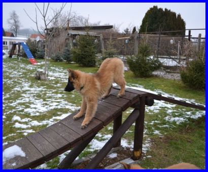 Filippa ist eine richtige Sportskanone, sie eignet sich für jede Art von Hundesport. Sie liebt meine Hängebrücke im Garten, genauso wie den großen Tunnel, Beutespiele findet sie klasse! Aber die kleine Rakete ist auch eine richtige Schmusekatze! Auf dem Sofa zu liegen und mit mir zu kuscheln genießt Filippa, dann wird sie zum Kätzchen, es fehlt nur noch, dass sie schnurrt :-)) Filippa ist einfach toll!!! Es fällt mir unwahrscheinlich schwer, mich von ihr zu trennen, aber mit vier erwachsenen Hunden und einem Welpen, Filippas Schwester Farouche werde ich behalten, habe ich einfach genug Hunde! Da muß man als Züchter auch ein bisschen vernünftig sein!