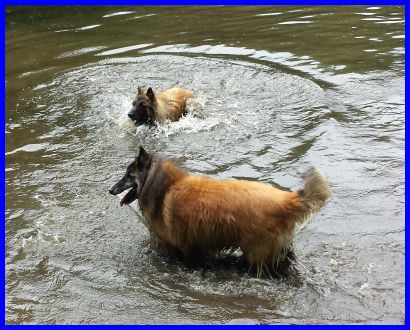 Hier bin ich nun schon 7Monate alt. Schwimmen finde ich toll, aber mit anderen Hunden rumtoben macht noch mehr Spaß! |