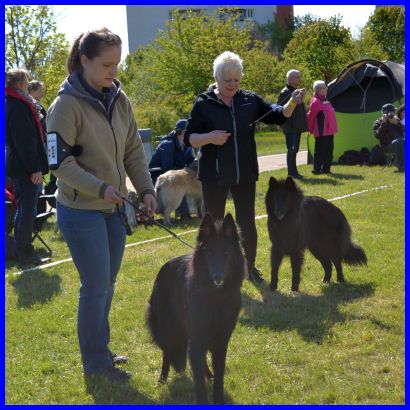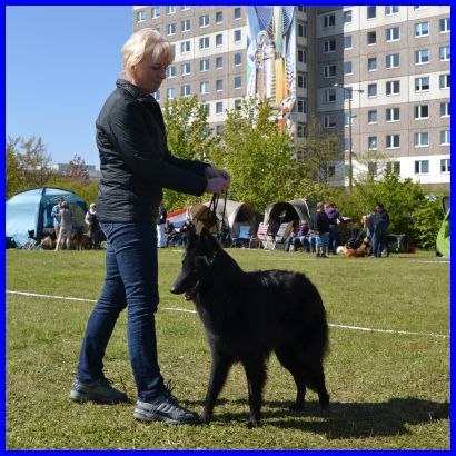 I am Akela the one and only of the BBO - SG1 in der Zwischenklasse Richterbericht: 19 Monate, Scherengebiss, kleine harmonische Hündin, femininer Kopf, Ohren von korrekter Größe, vorzüglich getragen, korrekte Halslinie, korrekte Ober- und Unterlinie, Winkelungen hinten etwas offen, vorne etwas steil, im Haarwechsel, flüssige und jugendliche Bewegungsabläufe, gute Vorführung, die Hündin ist noch etwas schmal in der Lendenpartie, zeigt sich sehr freundlich.