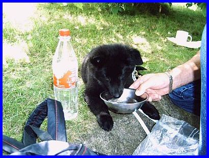 Hier bin ich mit 5 Tagen. Eine Handvoll Hund. |
