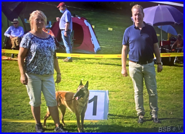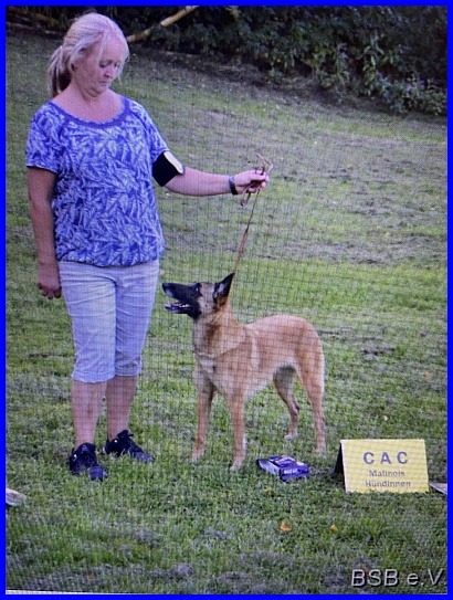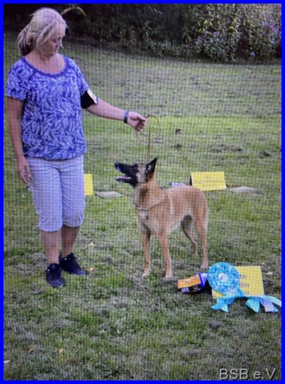 Auf der BSB Speziale in Helsa Eschenstruth hat Akela von dem Richter Tom Roozen V1, Anw. Dt. Ch. VDH, CAC und das BOS erhalten.