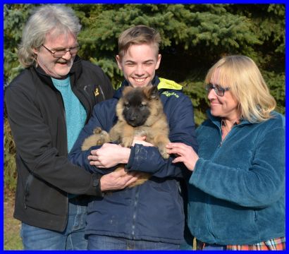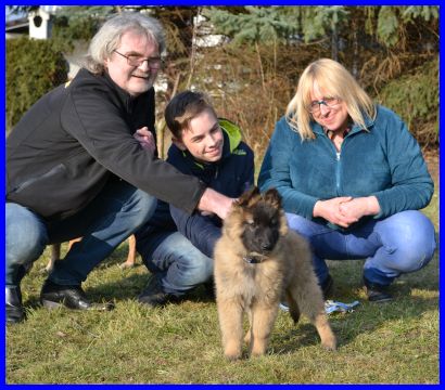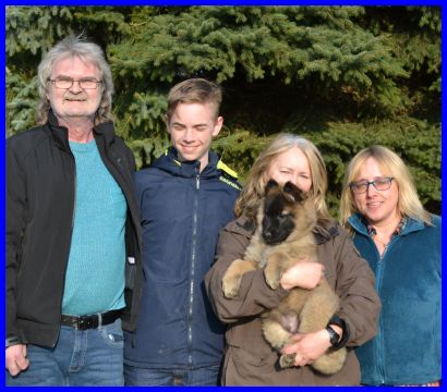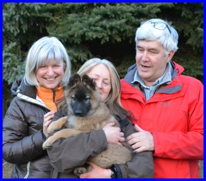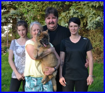 LaVie und ihre neue Familie, alle strahlen und freuen sich auf die zukünftige schöne Zeit. LaVie wohnt in Quierschied und wird auch ausgestellt werden, so werde ich meine kleine süße Maus auf jeden Fall wieder sehen! Ich wünsche Euch alles Gute, viel Spaß mit meiner LaVie und genießt die verrückte Welpenzeit, sie ist ganz schnell vorbei! |