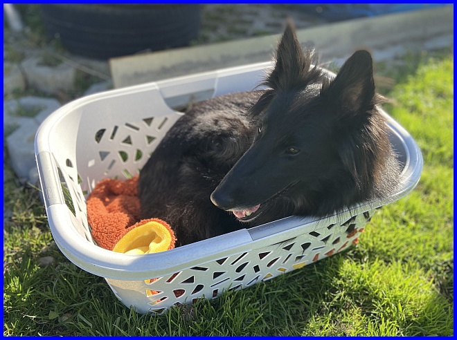 Wow, die Sonne ist echt schön warm... Rüde Blau genießt! |