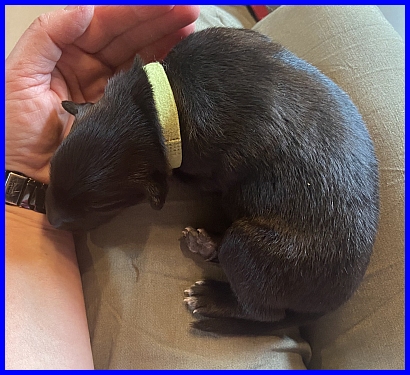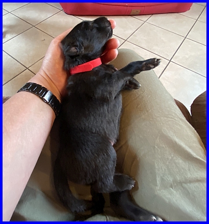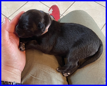 Frl. Rot ist das Fliegengewicht, wiegt 645g, und ist damit zur Zeit der leichteste Welpe. |