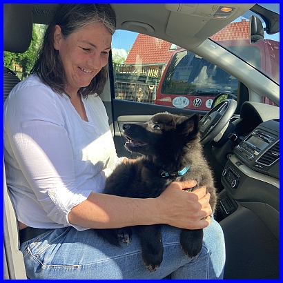Hier sind ein paar Momentaufnahmen vom Start in ihr neues Leben, kennen gelernt haben meine Knirpse ihre neuen Familien alle schon paar Wochen vor ihrem Auszug, nur die Entscheidung, wer zu wem darf, die ist erst sehr spät gefallen. Die Knirpse sind inzwischen schon 7Monate bei ihren neuen Familien, und alle sind mega glücklich, haben mir schon Fotos und Videos geschickt. Besonders sehr freut es mich, dass einige Welpen ausgestellt werden, und ich sie wieder sehen werde. Hier stelle ich erst einmal nur die neuen Familien vor. In den nächsten Tagen werde ich von jedem einzelnen Welpen ein kleines Portrait, mit Aufnahmen aus dem neuen Zuhause, in die Newstime 2023 stellen.