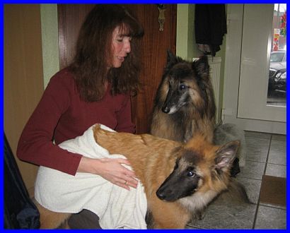 Also das sind sie nun, meine neue Familie! Mit Bianca werde ich später Agiliti machen, aber wie ihr seht, fand ich Bianca gleich beim Kennenlernen total interessant! Und mit Friedhelm habe ich sofort gekuschelt, ich wusste gleich, das ist meine Familie!