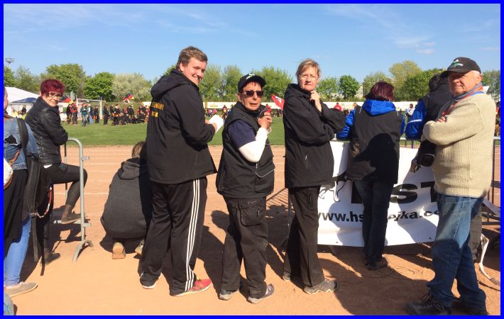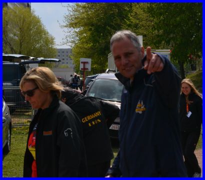 Im Vorbereitungsring, auflockern, bisschen Motivation für Ebse und Kerstin, Michael war allgegenwärtig! |