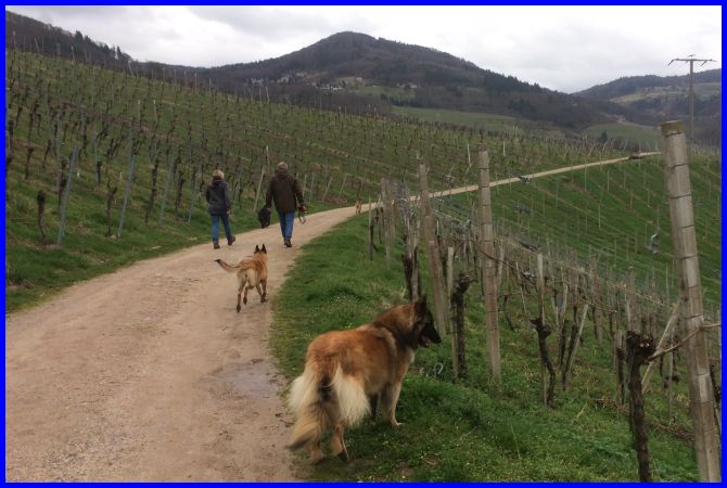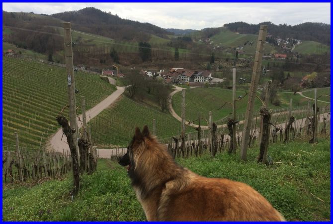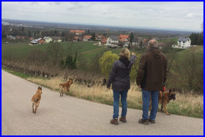 An dem Wochenende 18./19. März waren wir, einige sportbegeisterte BBO´ler mit unseren Hunden, bei Kerstin und Ebony auf dem Hundeplatz in Steinbach, Nähe Karlsruhe, zum gemeinsamen Training. Einen Bericht mit vielen schönen Bildern über das Wochenende können Sie auf Seite 1 dieser Zeitung sehen. Montag haben Hans und ich unter Kerstin ihrer Führung einen wunderschönen Spaziergang in die Weinberge gemacht. Die Gegend um Sasbach ist traumhaft schön, der Wettergott zeigte sich inzwischen auch wieder von seiner besten Seite, so dass wir das Wochenende perfekt abschließen konnten.