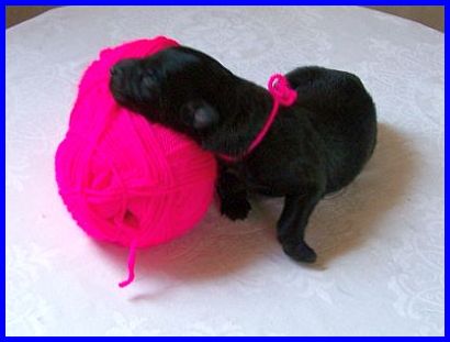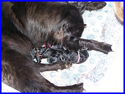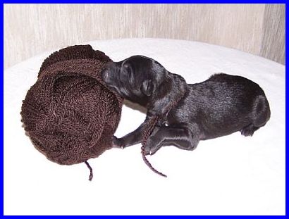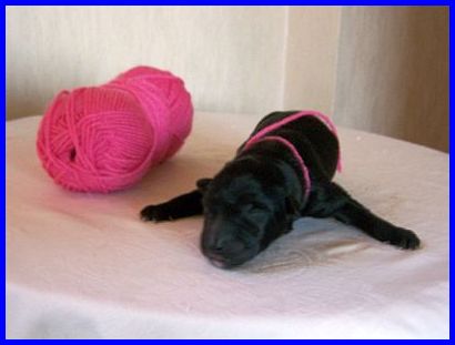 Dritter Welpe, zweite Hündin. Um zwei Minuten den zweiten Platz verpasst. Was für eine Hektik.