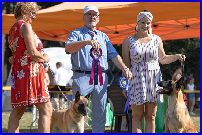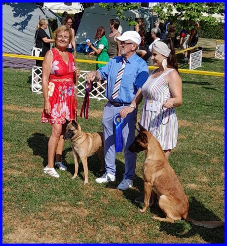 Acht Wochen später wart Ihr für eine Woche in Ungarn am Balaton, und anschließend startete der dreitägige Ausstellungs Marathon in Savar. Am ersten Tag, dem 19.07.2024, habt ihr Beide, Katrin und Elli, alles gegeben und wurdet mit V1, CACIB, CAC und BOB belohnt! Das zweite ausländische CACIB für den Internationalen Champion, nun kann der Titel beantragt werden. Klasse, ich freu mich riesig für Euch