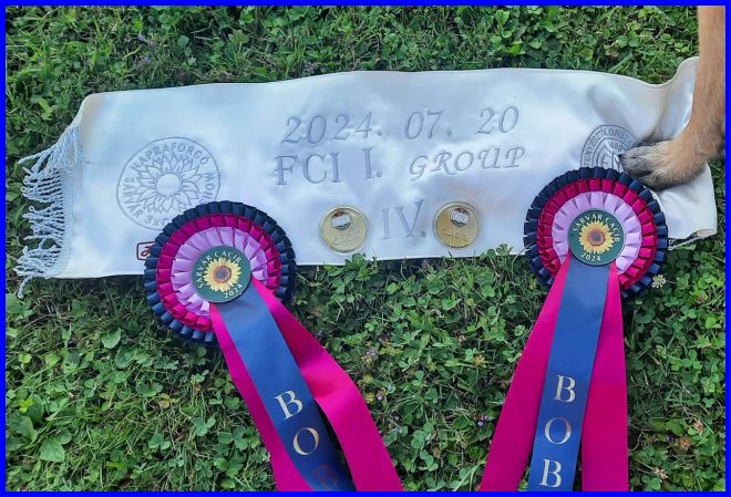 Am zweiten Tag, dem 20.07.2024, habt ihr Beide wieder alles gegeben und wurdet erneut mit V1, CACIB, CAC und BOB belohnt! Das kann man nicht mehr toppen...DOCH kann man! Elli bekam im Ehrenring den 4. Platz der FCI Gruppe 1!!! Ich platze gerade vor Stolz1